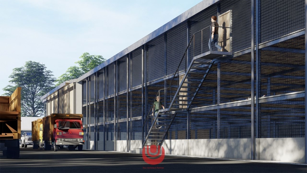 Konsep tatanan massa yang memanjang dan rute akses yang rapi menunjukkan efisiensi fungsi dan mobilitas pengguna, cocok untuk hunian komunal, fasilitas pekerja, atau bangunan multifungsi. Karakter arsitekturnya yang sederhana namun sangat terorganisir mencerminkan nilai-nilai kepraktisan, keberlanjutan, dan integrasi dengan alam sekitar.