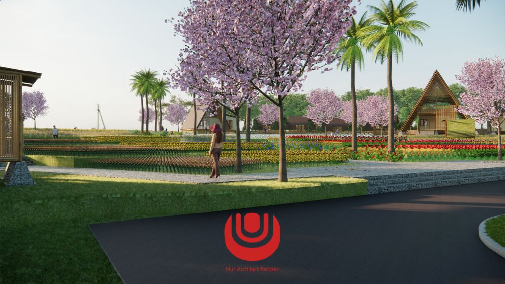 Lingkungan sekitar bangunan dirancang dengan lanskap tropis yang rimbun, ditandai dengan pepohonan berbunga, taman bunga musiman, dan jalur pejalan kaki berbatu yang memandu sirkulasi pengunjung. Tata letak bangunannya menyebar dan terbuka, menunjukkan orientasi terhadap konsep komunal dan rekreasi.